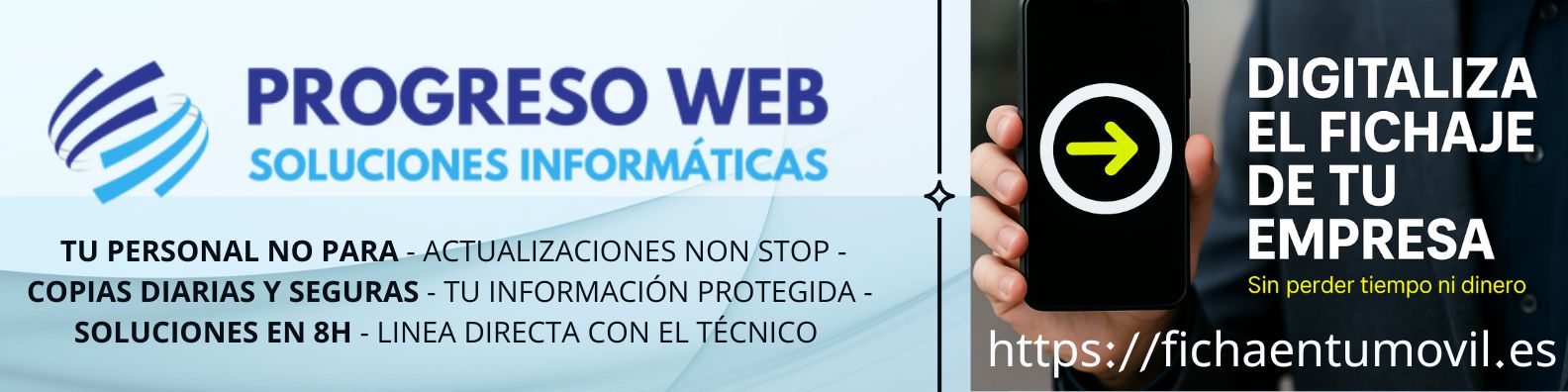 Ficha en tu móvil es un software desarrollado por el equipo de ingenieros informáticos de Progreso Web SL. Empresa dedicada a la instalación y mantenimiento de sistemas informáticos desde hace más de 30 años.